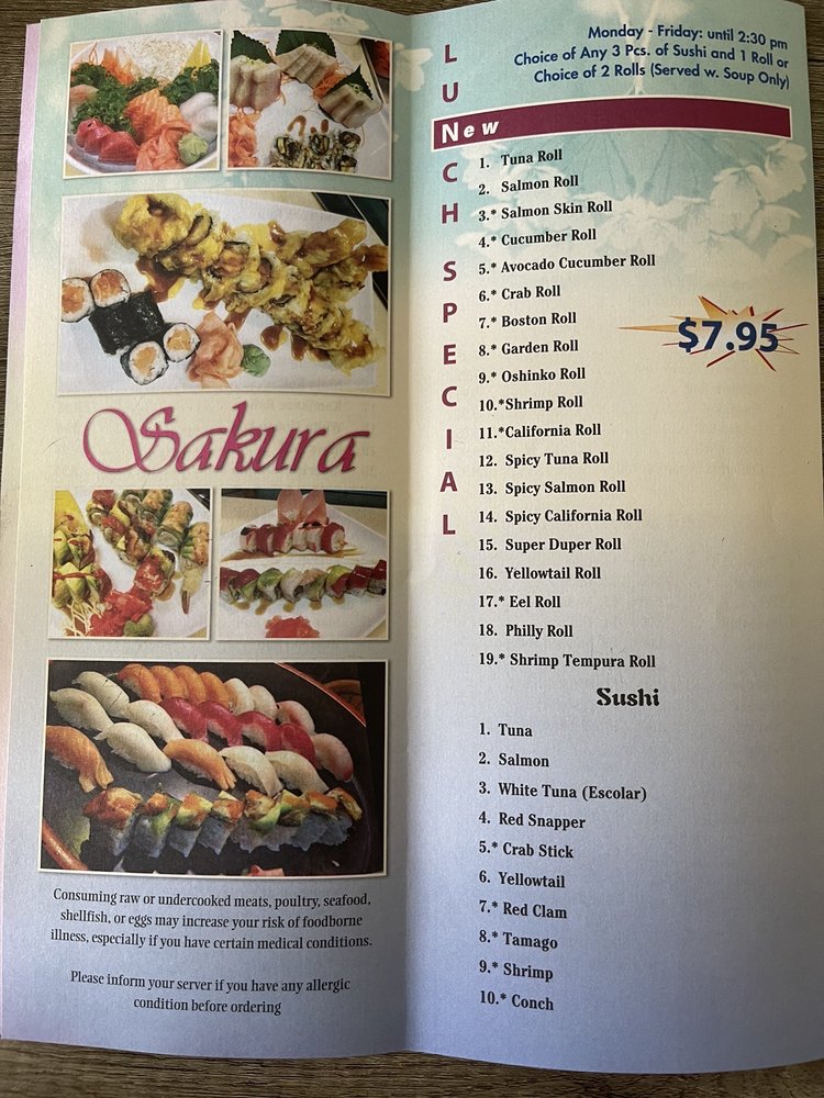 Sushi aficionados can revel in selections like the Sushi Deluxe, featuring a chef's choice of 10 pieces of sushi and a California roll for $16.00. Customer reviews highlight the exceptional quality and freshness, particularly mentioning rolls like the super duper and Fuji mountain as must-tries. With a welcoming atmosphere, friendly service, and plenty of vegetarian options, Sakura Japanese is the ideal spot for lunch, dinner, or a casual night out.